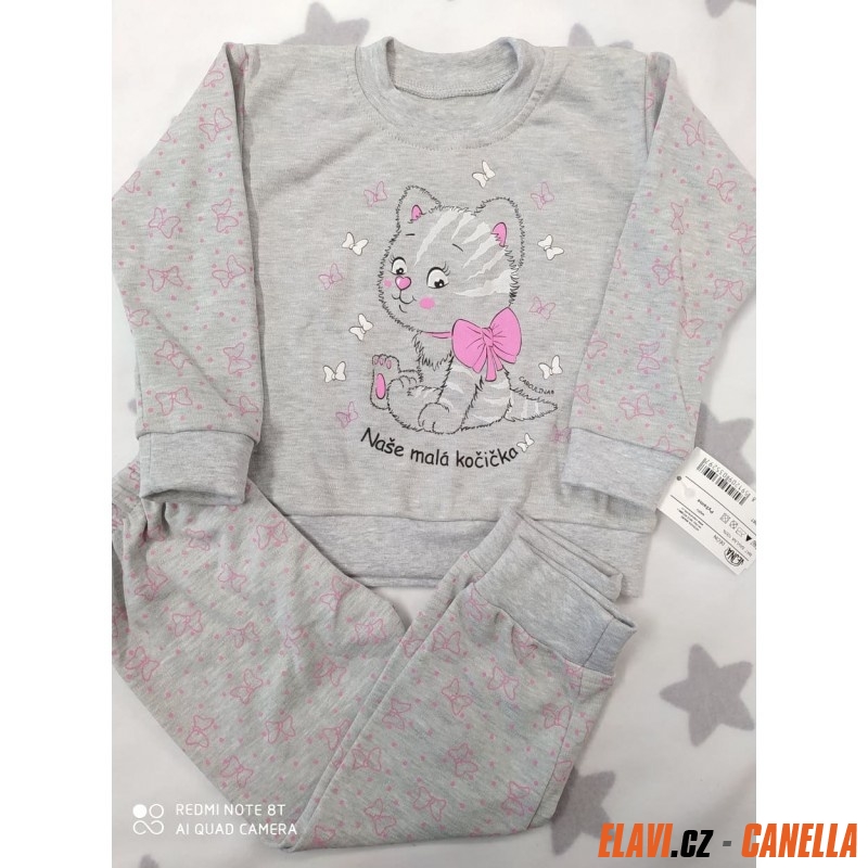 Dětské pyžamo s českým nápisem - šedá - vel. 104 kočička