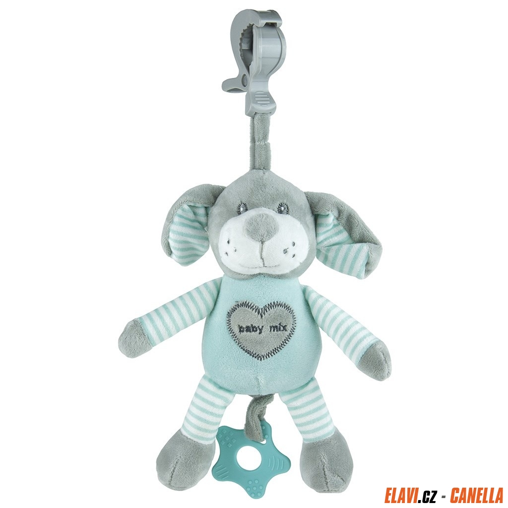 Krásná barevná plyšová hračka Baby Mix pro miminka. Hračka po natáhnutí hraje příjemnou melodii, která miminku pomáhá při usínání. V jedné nožce se ukrývá pískátko, ve druhé chrastítko. Hračká má klip na upevnění ke kočárku. Rozměry 25 cm.