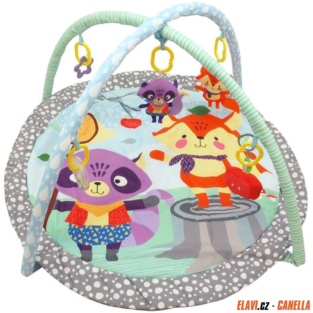 Vzdělávací hrací deka s hrazdou Baby Mix. Měkká polstrovaná deka se svěžím designem. Díky jednoduché konstrukci a dodávané tašce lze deku lehce přenášet. Zavěšené hračky: chrastítka, pískací hračky. Hrazdičky se dají odepnout, stejně tak jako hračky.