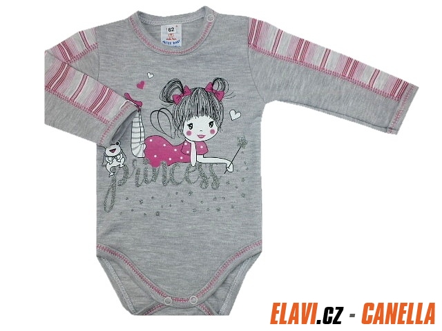 Kojenecké body Princess - Šedá + růžová - vel. 74