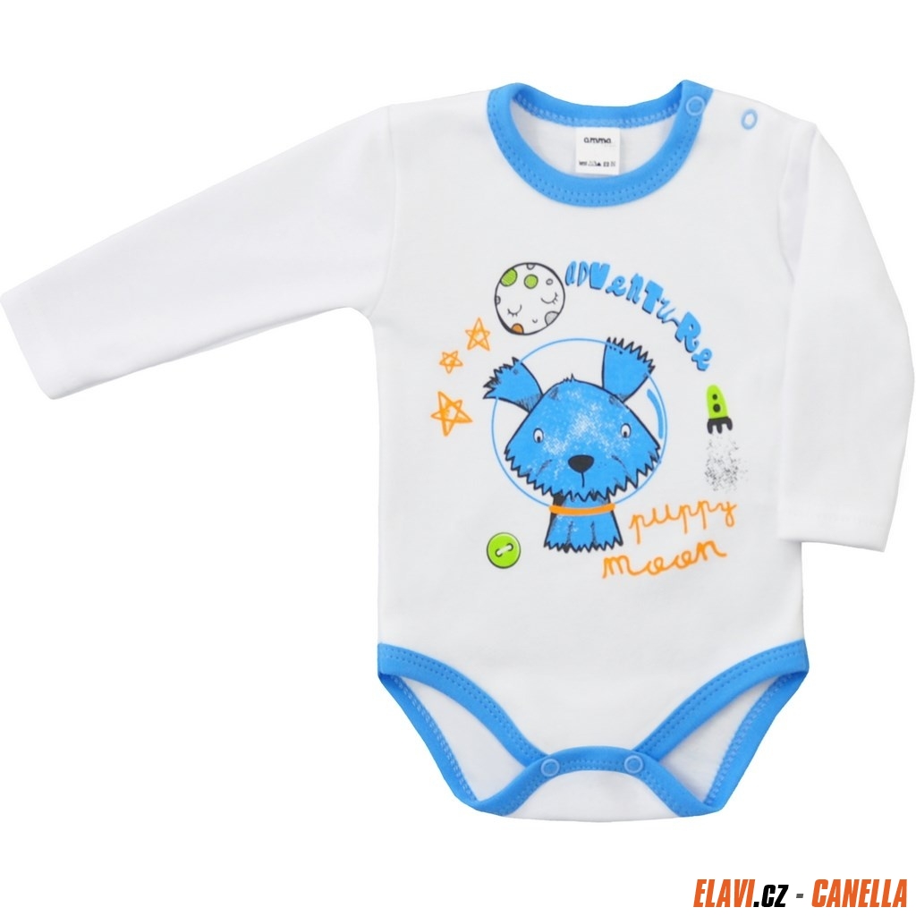 Kojenecké body s dlouhým rukávem pejsek Bílá 62 (3-6m)