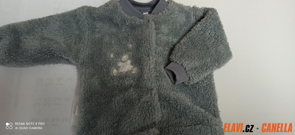 Kojenecký kabátek fleece-peří - vel. 74 šedý medvídek