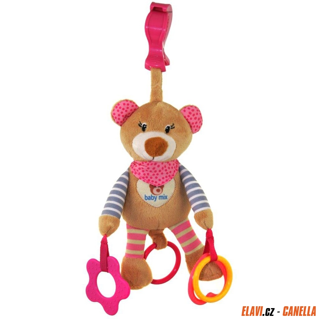 Krásná barevná plyšová hračka Baby Mix ve tvaru medvídka pro miminka. Hračka má barevné kousátka a plastový klip na uchycení hračky ke kočárku, po natáhnutí vibruje. Výška cca 22 cm. Vhodné pro děti od prvních dnů života.